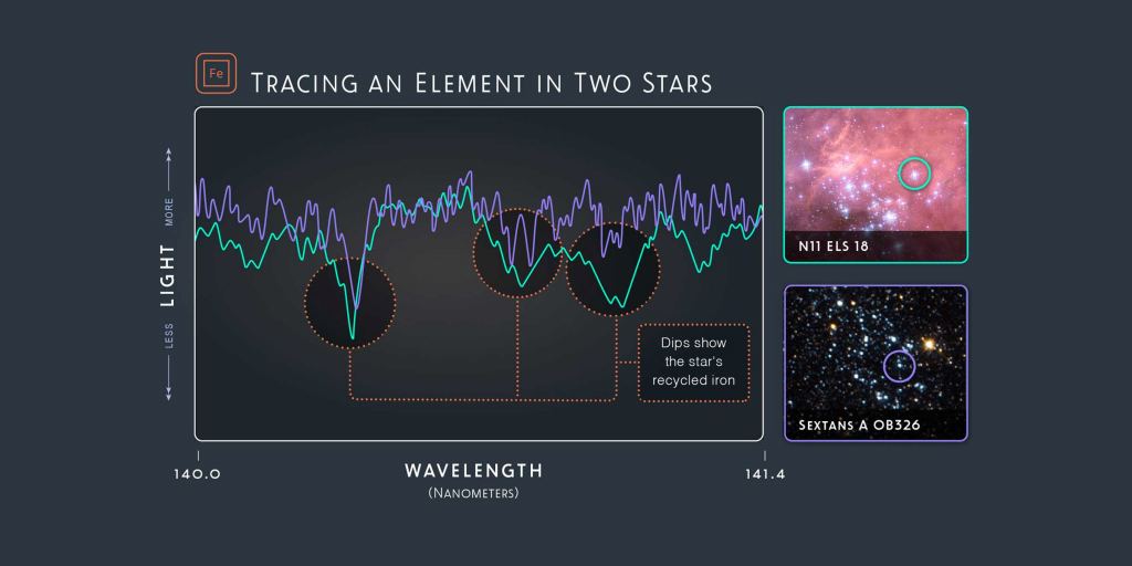 In ULYSSES, Hubble targeted hot blue stars in nearby galaxies with low metallicity, the type that would've existed in the early Universe. At that point in the Universe's life, they would've contained nothing heavier than hydrogen and helium. This type of galaxy was common in the very early universe. Only once these hot young stars died and spread the elements they created inside themselves would the heavier elements needed for rocky planets, water, and even life be available. "ULLYSES observations are a stepping stone to understanding those first stars and their winds in the Universe and how they impact the evolution of their young host galaxy," said Roman-Duval.