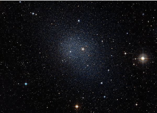 Such dwarf galaxies are far more difficult to detect than others due to a number of distinct characteristics. KKs3 is what is known as a dwarf spheroid (or dSph) galaxy, a type that has no spiral arms like the Milky Way and also suffers from an absence of raw materials (like dust and gas). Since they lack the materials to form new stars, they are generally composed of older, fainter stars.