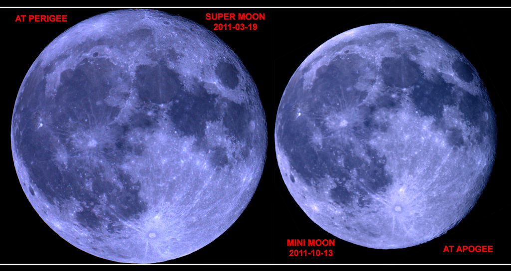 Does the rising Full Moon look smaller to you than usual this week? While the apparent change in diameter from apogee to perigee is slight, it is indeed noticeable to the naked eye observers. Remember, the Moon is actually about one Earth radius (6,400 kilometres) more
