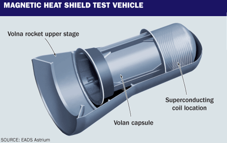 said that with the cooperation of German aerospace center DLR and the European Space Agency, Astrium was developing a potential magnetic heat shield for testing within the next few years.