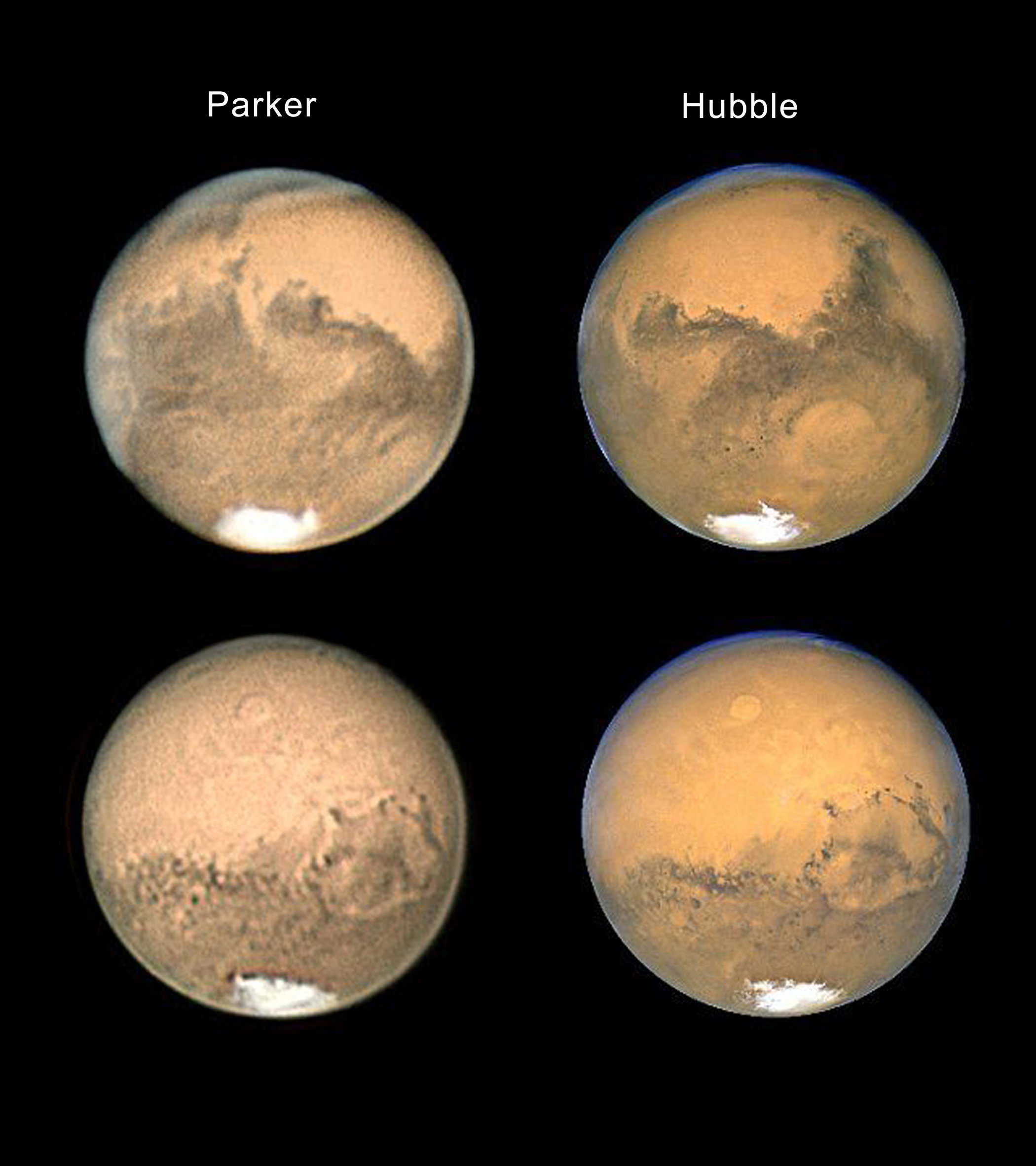 Hubble images show cloud formations (left) and the effects of a global dust storm on Mars (Credit: NASA/Hubble)[/caption]