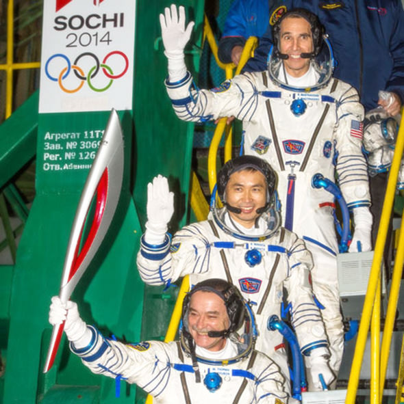 with Expedition 37 crew members Karen Nyberg of NASA, Fyodor Yurchikhin of the Russian Federal Space Agency, and Luca Parmitano of the European Space Agency on Sunday, Nov. 10. And while the actual Olympic flame had continued to be carried by torchbearers across more than 40,000 miles through 2,900 towns and villages in Russia, it will be that particular spacefaring torch that will be used to light the 2014 Olympic cauldron during the Opening Ceremony in Sochi on Feb. 7.