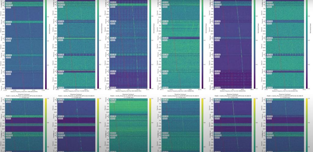 Murriyang's scan of ProxCen is intense – 800 million radio frequencies monitored simultaneously spanning the 700Mhz to 4Ghz range. 20TB of information is collected in a matter of days. In addition to flares, Berkeley undergraduate student Shane Smith working with Breakthrough Listen, currently the world's largest SETI project, used software called turboSETI to scan for signs of alien technology. The software filters signals with certain patterns that may indicate something of interest. After filtering 4 MILLION detection "hits", one very peculiar signal remained warranting further scrutiny.