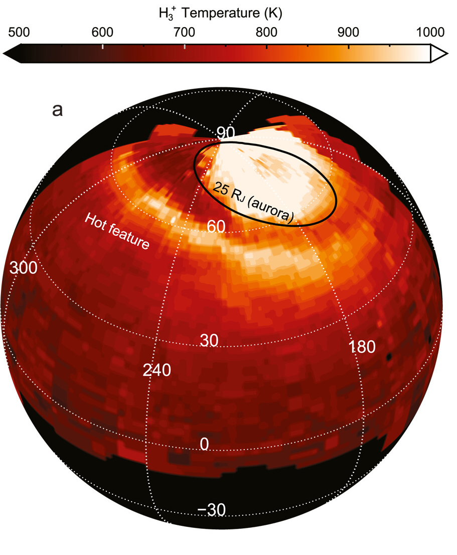 This is unusual. Normally, the background temperature at Jupiter is about 350 C and there's a temperature gradient that goes from higher levels at the poles to lower levels at the equator. That's normally how auroral energy gets distributed across Jupiter. So, for a giant hot spot to appear like this 2-3 times a month indicates something is going on. The team suggested in a paper that it's possible the compression intensifies normal auroral heating and that drives the superheated region away towards the equator. They also suggest there could be some other activity that is creating the hot zone they see happening each month. It could be a stationary zone in the atmosphere, caused by a connection between the inner magnetosphere and the Jovian ionosphere.
