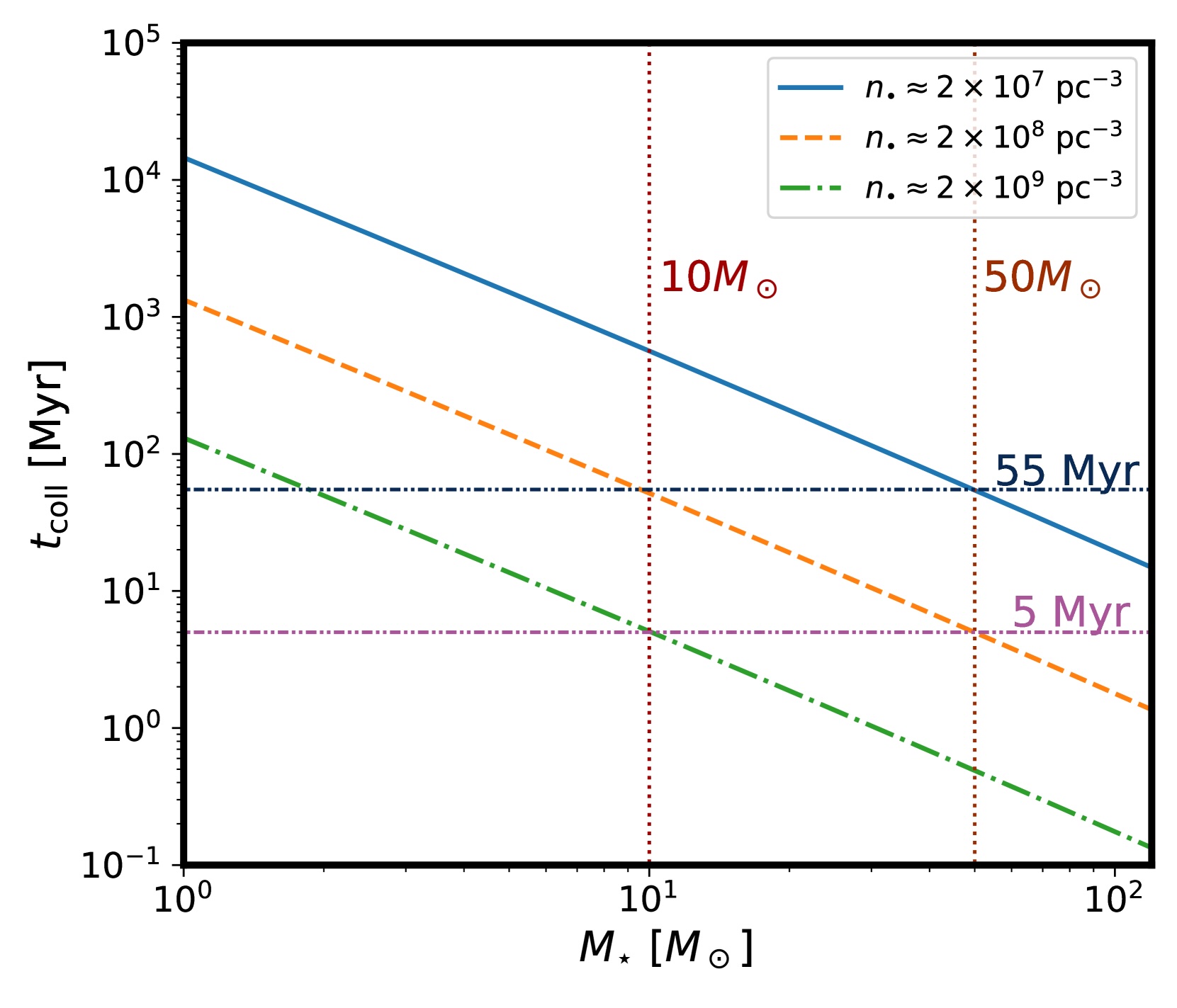 Collision times of stars vs black hole density. Credit: Haas, et al