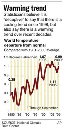 [/caption] Borenstein wanted to know if this was a longer climate trend or just weather's normal ups and downs. All four of the statisticians agreed independently the statistics overall clearly show an upward trend of warming. Also included was a data set of satellite temperature data that is often favored by skeptics of global warming. Same story there: global temps are on the rise.