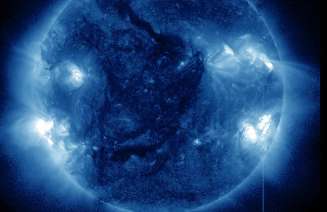 "X1-class solar flare on the right, new active region on the left. Will the action continue?" asked