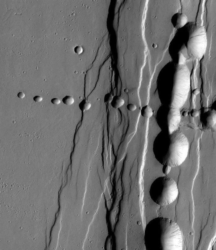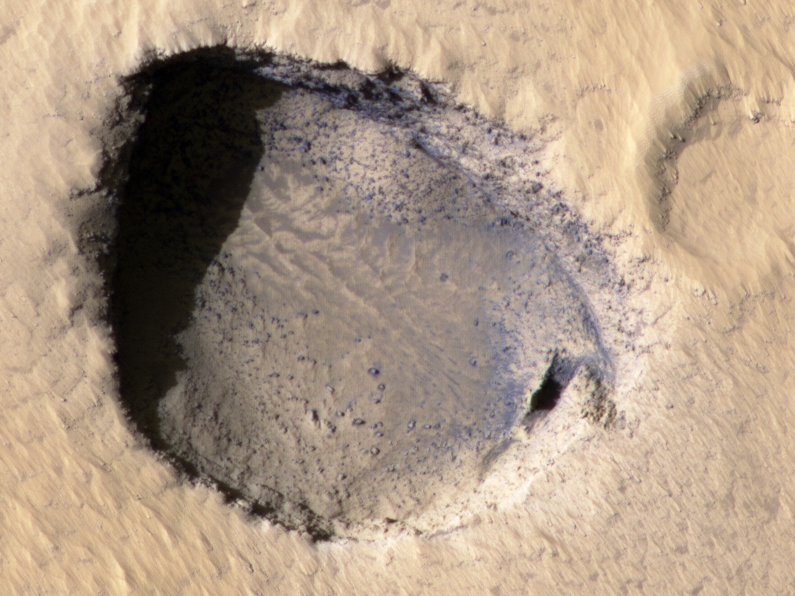 But the Mars Reconnaissance Orbiter and other previous missions orbiting the Red Planet have identified more than 100 pit craters around the Tharsis region of Mars that exhibit unusual features compared to other pit craters.