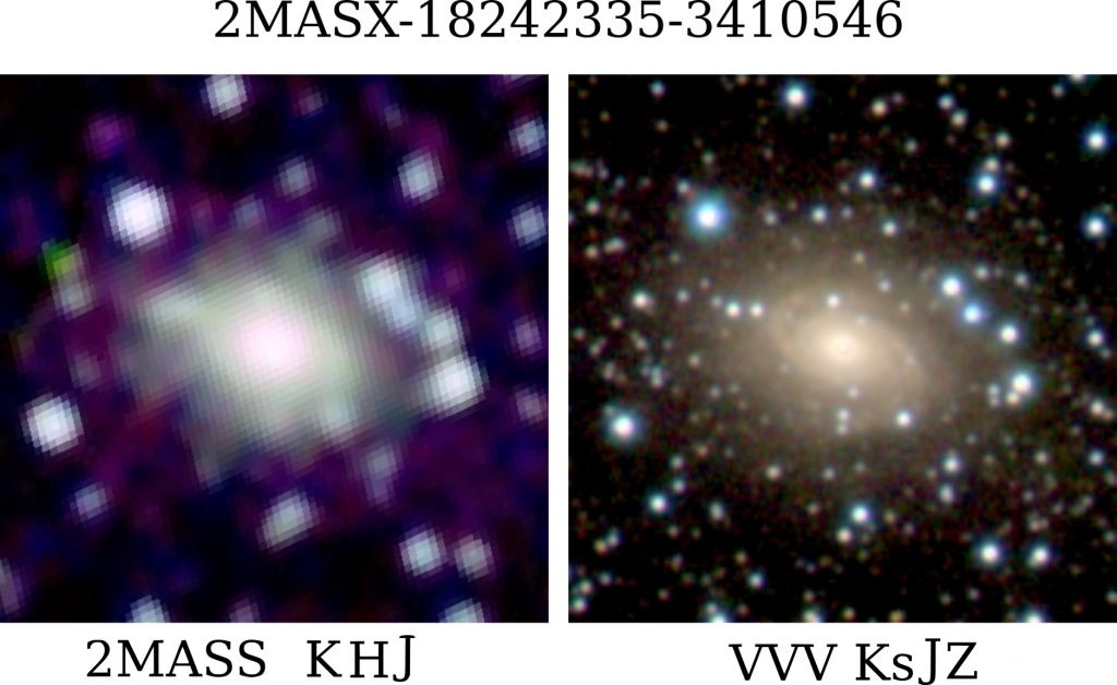 They then compared their candidates with data from the 2MASS Extended Source Catalogue. Although 2MASS contains 1.5 million objects, only 271 of them are in the VVV survey region, and the team found that only 182 are galaxies. That's a small number, but the results are impressive. Galaxy images captured by the VVV survey show significantly greater detail than the 2MASS survey, and this work was able to confirm 75% of the 2MASS galaxies in the region.