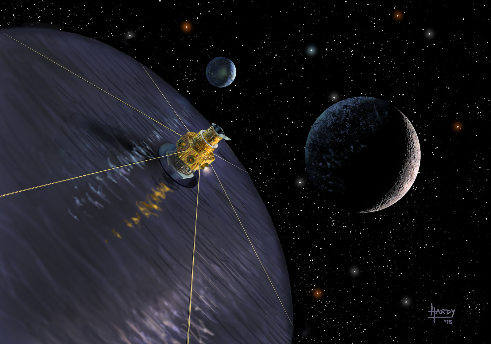 *A laser sail system travelling through space. Credit: David A Hardy*