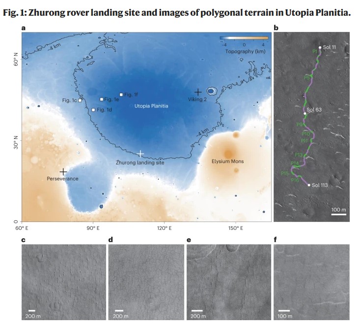 China's Zhurong rover was equipped with a ground-penetrating radar system, allowing it to peer beneath Mars's surface. Researchers have announced new results from the scans of Zhurong's landing site in Utopia Planitia, saying they identified irregular polygonal wedges located at a depth of about 35 meters all along the robot's journey. The objects measure from centimeters to tens of meters across. The scientists believe the buried polygons resulted from freeze-thaw cycles on Mars billions of years ago, but they could also be volcanic, from cooling lava flows.