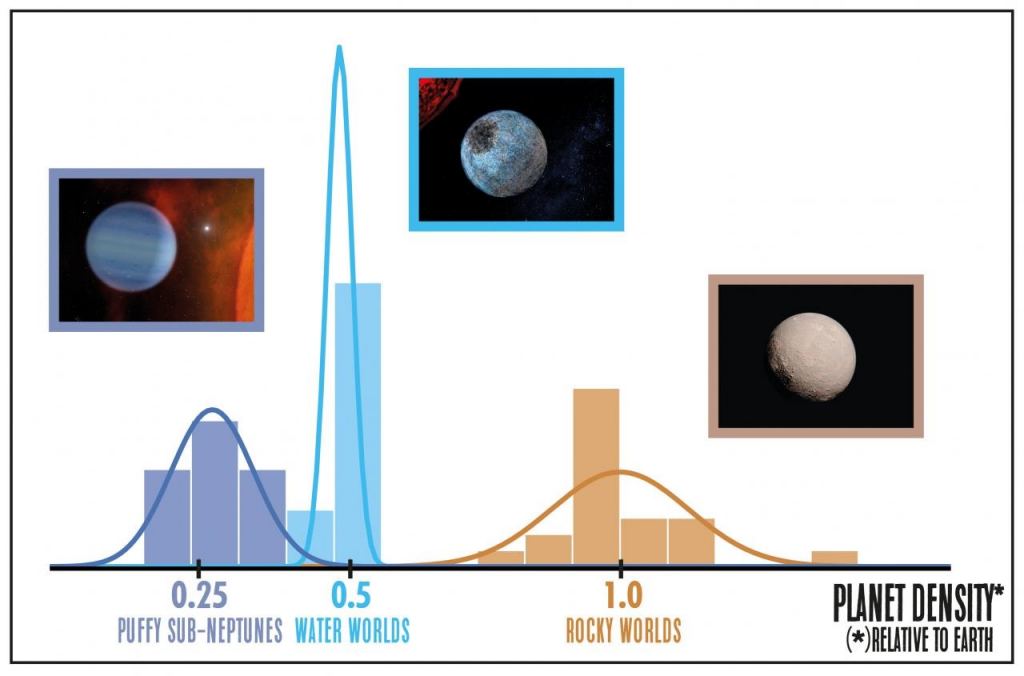 “We have discovered that small planets orbiting this type of star can be classified into three distinct families: rocky planets very similar to Earth, planets with half their mass consisting of water that we call water worlds, and mini-Neptunes with extended atmospheres of hydrogen and/or helium. The distribution of sizes and densities of exoplanets is a consequence of the formation of planets at different distances from the star, and not of the presence or absence of an atmosphere."