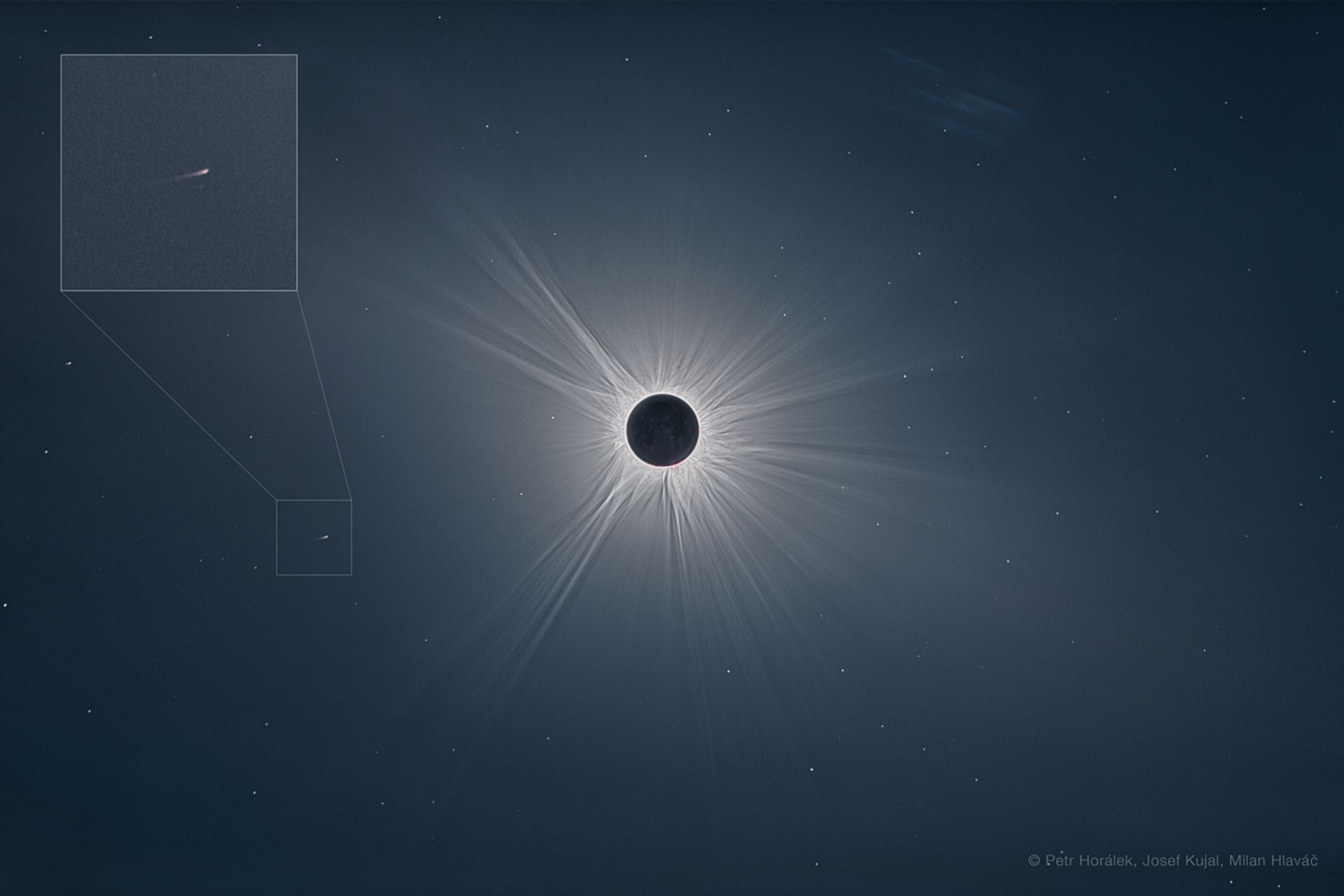 At the time, the doom'd comet was a faint object, located only a few degrees from the Sun. The icy interloper was a tough target to nab during the fleeting minutes of totality, but at least two dedicated astrophotographers managed to catch it. Lin Zixuan saw it imaging from northern New Hampshire. Petr Horálek from the Institute of Physics in Opava Czechia (Czech Republic) was imaging from Mexico as he caught the object.