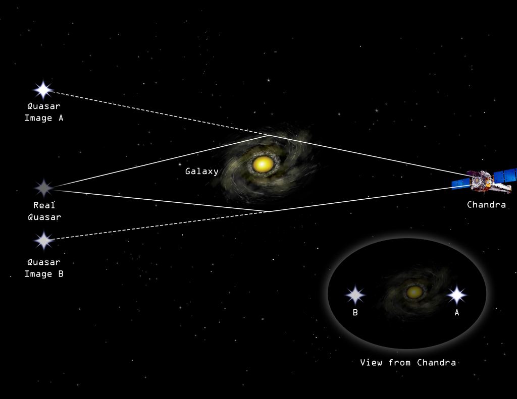 Sometimes this effect happens on a cosmic scale. If a distant supernova is far behind a galaxy, the light of the quasar is bent around the foreground galaxy, creating multiple images of the quasar. It is this gravitational lensing of distant quasars that was the focus of this new study.