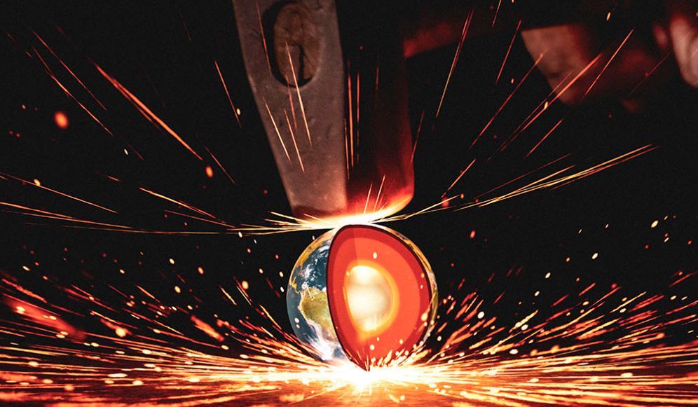What happens to the iron when two planets collide? What happens to the iron at the Earth's core? In both scenarios, the iron is subjected to extreme heat and pressure. Most of what scientists do know about iron in these extreme conditions comes from laboratory experiments involving lesser temperatures and pressures. But researchers at the DOE's SLAC (Stanford Linear Accelerator Center) wanted to recreate the extremes at the Earth's center as best they could to test iron's behaviour.