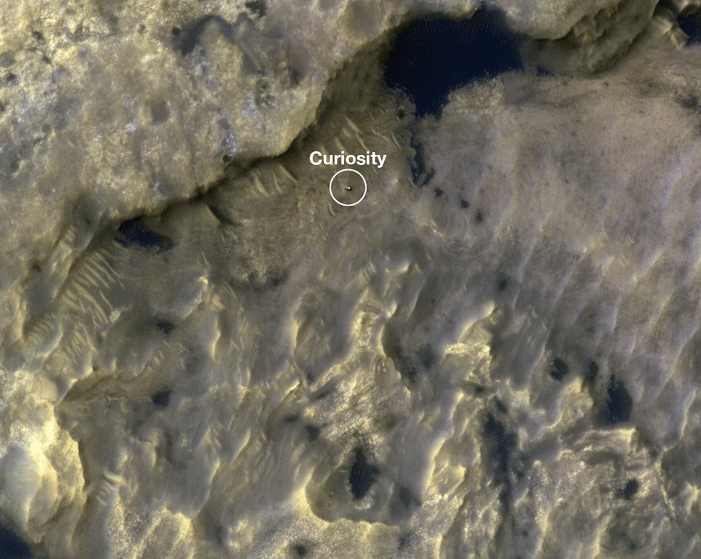 If the Curiosity rover was paranoid, would it feel like it was being watched? Well, it is being watched, by its brother in orbit, the Mars Reconnaissance Orbiter. The MRO watched Curiosity as it travelled through the ' Clay-Bearing Unit ' in Gale Crater, during June and July, 2019.