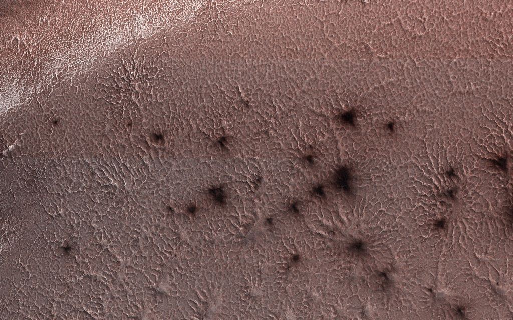 Scientists are calling these features araneiform terrain or spider terrain.They are found in clusters that give the surface a wrinkled appearance. NASA scientists recreated these patterns in lab tests to understand the processes behind their formation. "The spiders are strange, beautiful geologic features in their own right," said Lauren McKeown of NASA's Jet Propulsion Laboratory in Southern California.