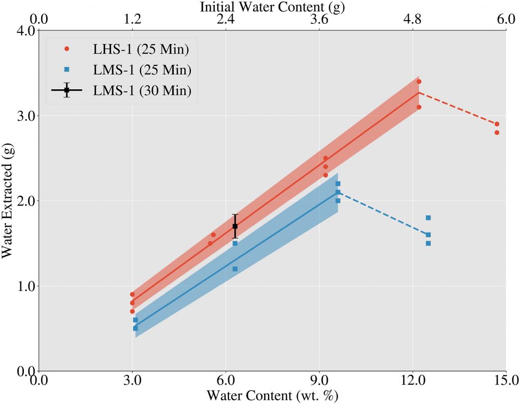 Reference: Cole, James D., et al. " Water extraction from icy lunar simulants using low power microwave heating." *Acta Astronautica* (2023).