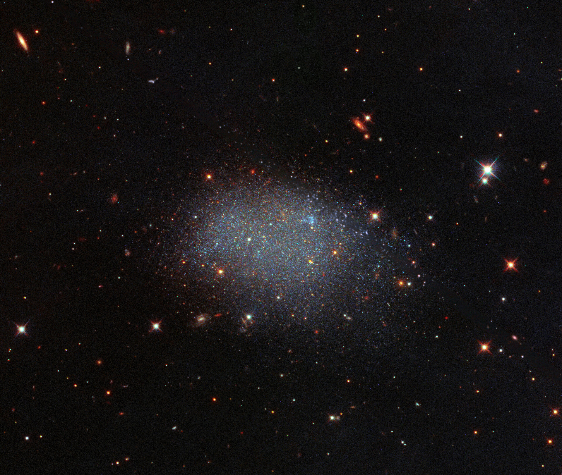 KK 246, also known as ESO 461-036, is a dwarf irregular galaxy, and ESA aptly described this picture as looking like "glitter spilled across a black velvet sheet."