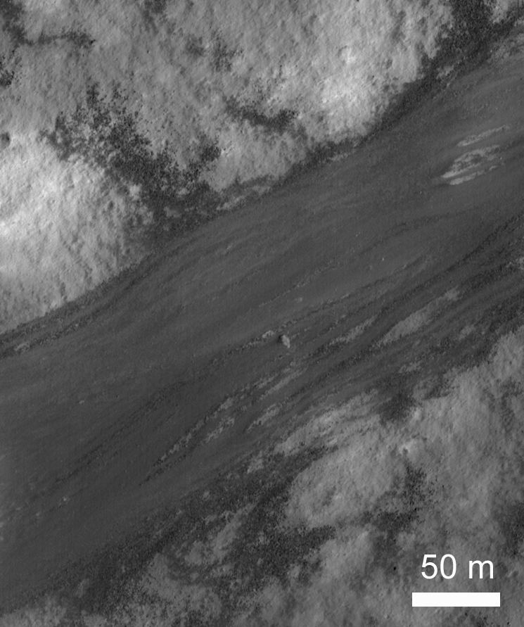 The image above shows a closer view of the flows. The LRO team says that the overlapping nature of these small slides indicate that the overall feature may have formed over a period of time, rather than all at once.