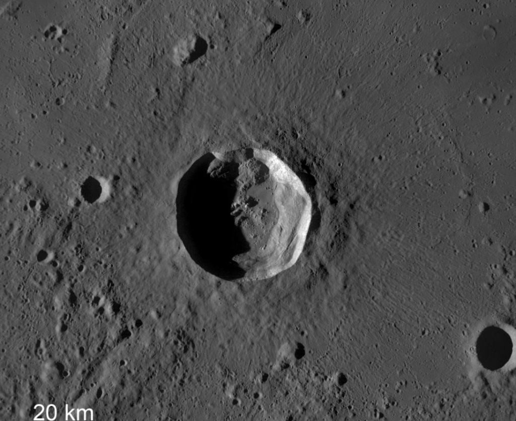 In this image, you can see how the walls of an impact craters can slowly slump as the crater ages due to wall material moving downslope onto the floor.