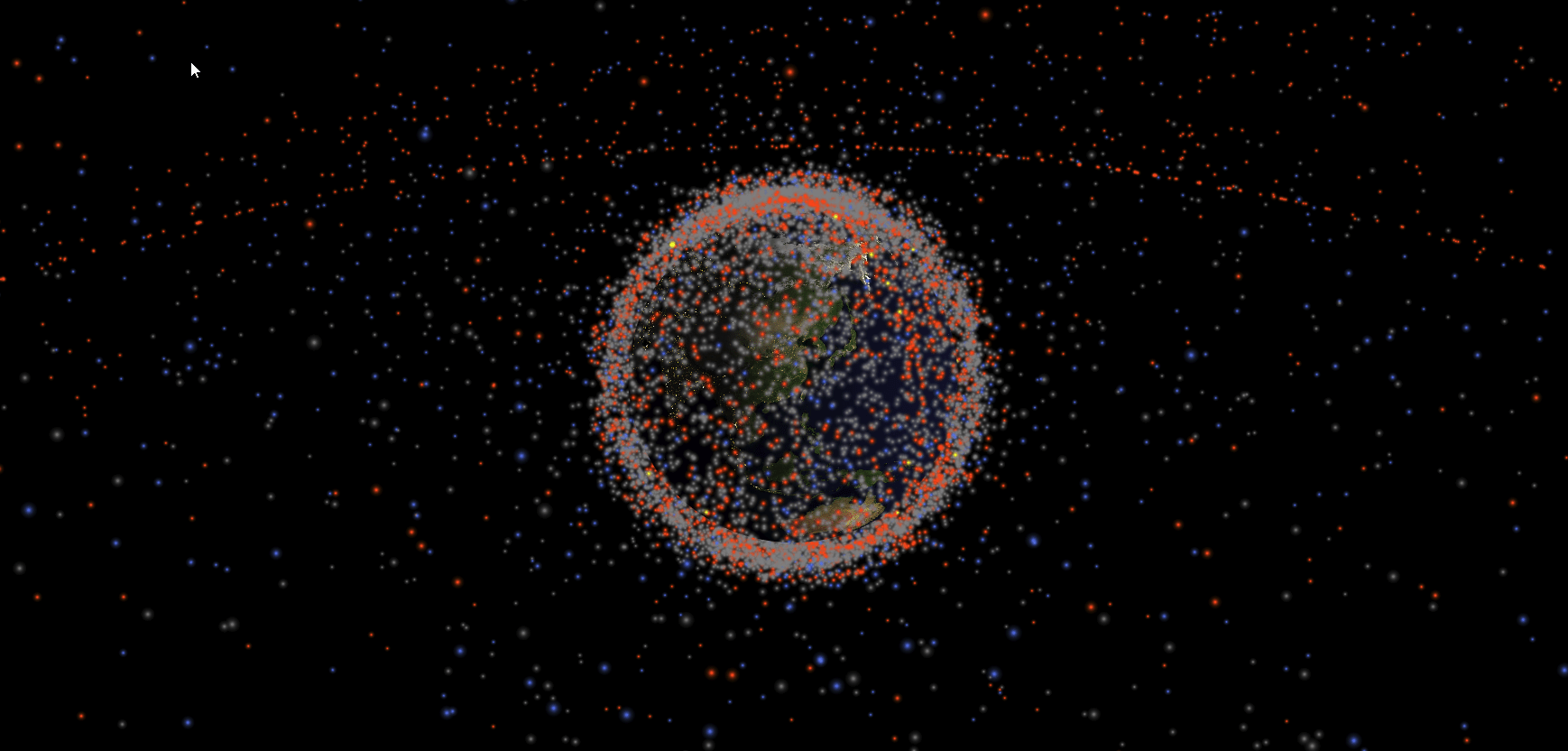 . It's a simulation of every satellite (alive or dead), space station, and large piece of space junk orbiting the Earth right now.
