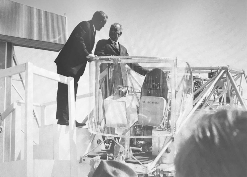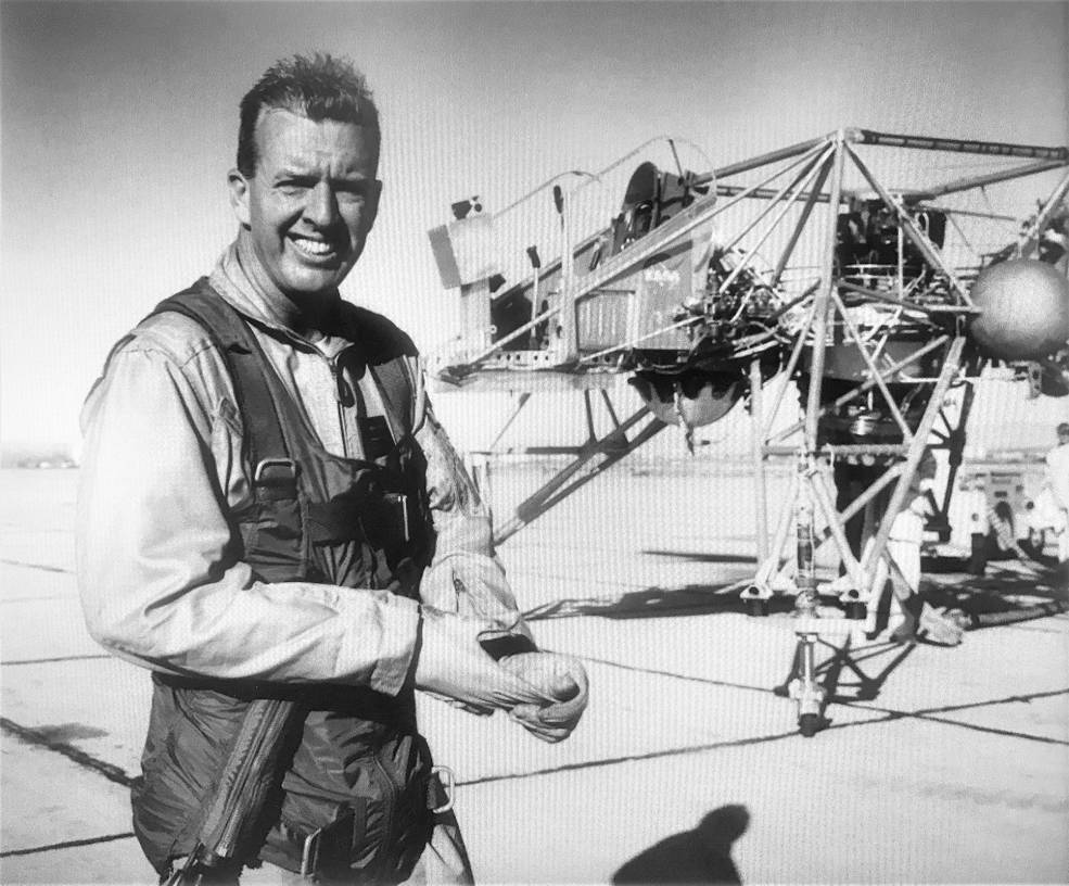 Eventually, initial ground testing was complete, and in October 1964, the FRC's chief pilot, Joseph Walker, attempted the LLRV's first flight. Walker was a veteran test pilot who'd flown the X-15 25 times. In two of those flights, he'd crossed the 65 mile high artificial barrier between Earth's atmosphere and space.