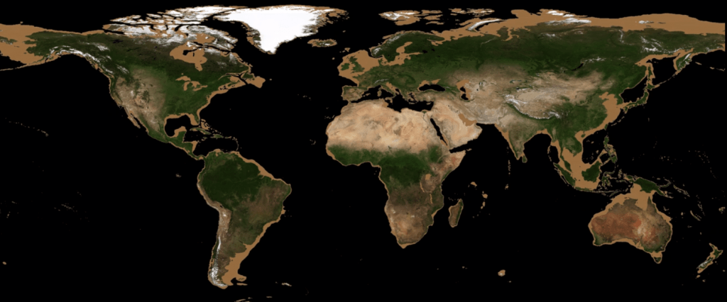 The video shows how shallow some of the oceans are, and gives a clue to what Earth was like when much more of its water was frozen, and how humans may have migrated.