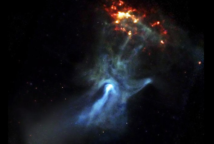 That spooky hand in the image above is producing questions for scientists. While the shape only coincidentally looks like a human hand, scientists are still trying to figure out how a small star produced such a large shape visible in X-rays.