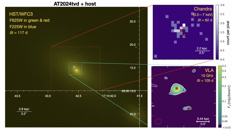 AT2024tvd is the first offset TDE captured by optical sky surveys, and it opens up the entire possibility of uncovering this elusive population of wandering black holes with future sky surveys," said lead author Yao. "Right now, theorists haven't given much attention to offset TDEs. I think this discovery will motivate scientists to look for more examples of this type of event.