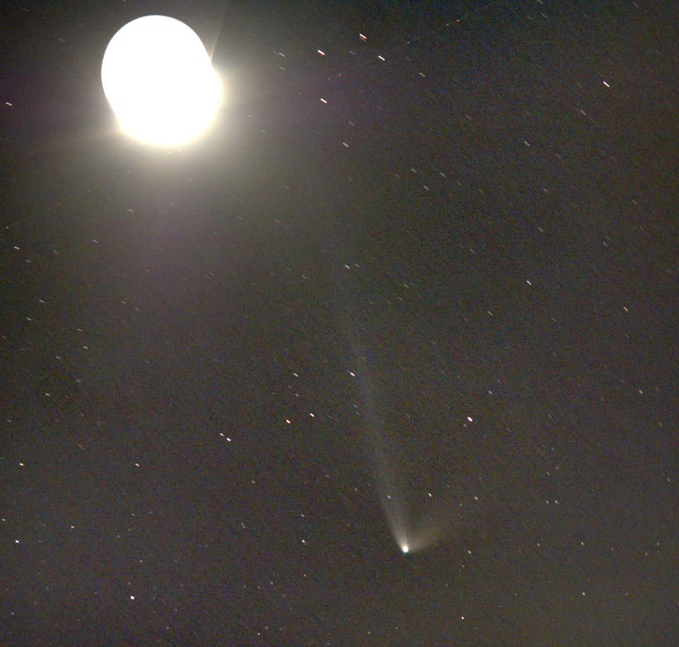 More striking, a sliver Moon will hover just 2.5° above the comet on Saturday the 18th, one day before its closest approach to Earth of 109.7 million miles (176.6 million km). Q1 has been fading since perihelion but not too much. Australian observers