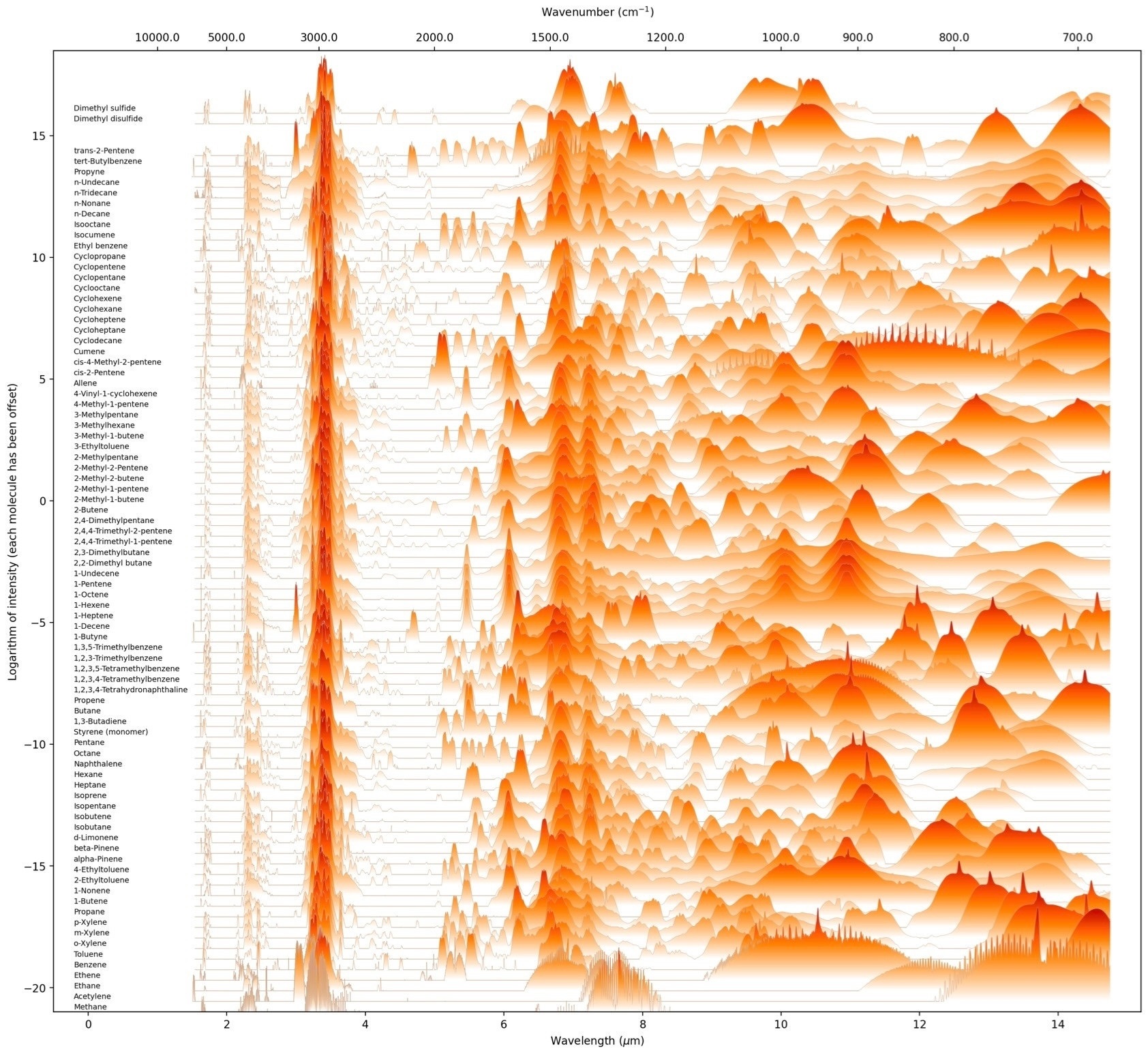 Overview of the absorption cross sections for hydrocarbon molecules. Credit: Niruala et al. (2025)