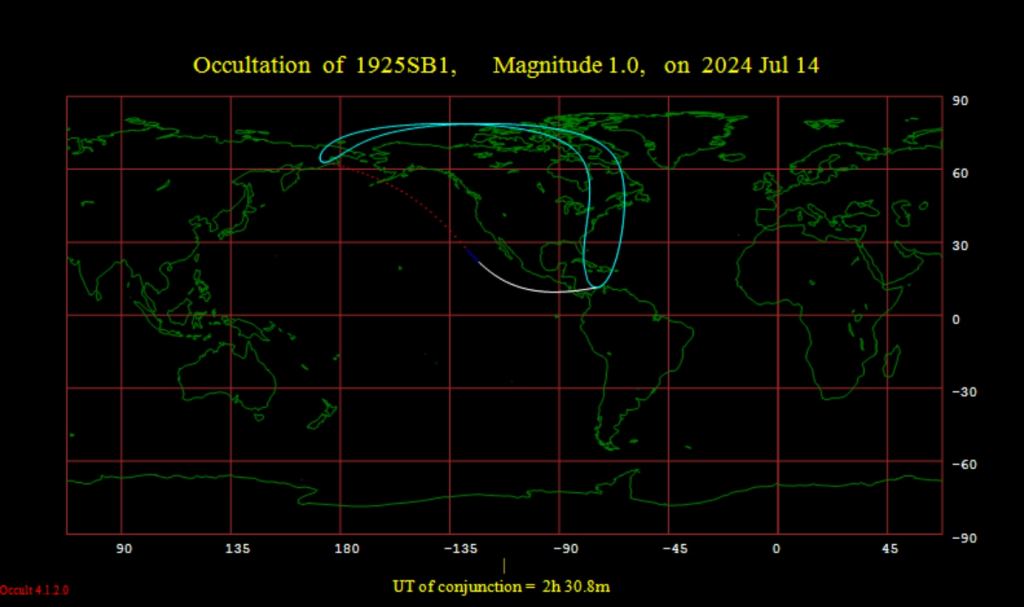 The top bright star versus asteroid occultation for 2024 occurs on June 29th, when asteroid 2819 Ensor occults the +3.2 magnitude star Phi Sagittarii for north Asia.