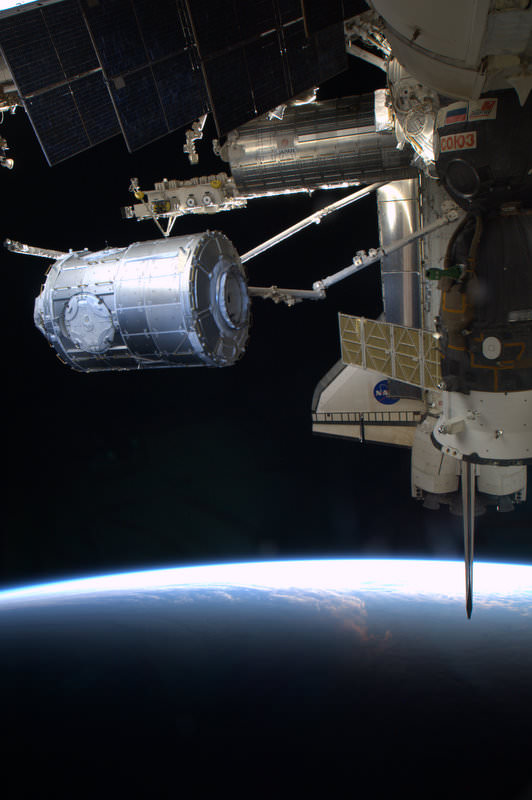 The new 15 ton Tranquility module which had been carefully nestled and carried to orbit inside the cavernous