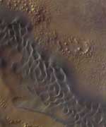 The NASA/ASU THEMIS imaging team has released a photo of Mars which has been corrected as close as possible to realistic colour. This image of cliffs and basalt sand dunes in the southern Melas Chasma region of Mars was taken by NASA's Mars Odyssey spacecraft. Astronomer and space artist Don Davis used photographs from the Hubble Space Telescope and his own experience to modify the colours in the picture until they looked natural.
