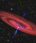 "We're interested in studying galaxies with massive black holes," said Dr. Mark Swain, a JPL astronomer and lead author of the paper. "We found that emission in NGC 4151 was unexpectedly compact. This indicates the light we saw is likely coming from a disc of material falling into the massive black hole."