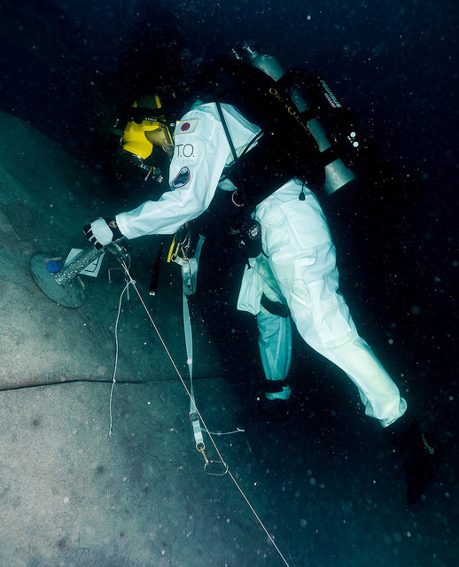 The six-member NEEMO crew also included Japan Aerospace Exploration Agency astronaut Takuya Onishi, Canadian Space Agency astronaut David Saint-Jacques, and James Talacek and Nate Bender of the University of North Carolina Wilmington.