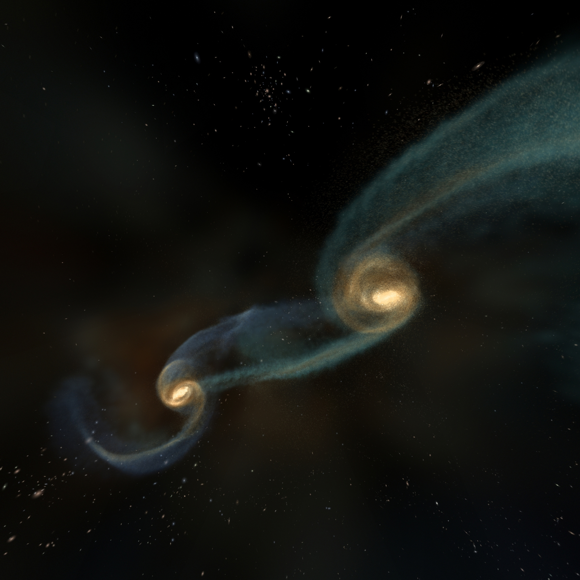 As you probably know, there's a supermassive black hole lurking at the heart of every galaxy. As these galaxies merge, these black holes encounter one another too. Sometimes a black hole is violently kicked into deep space, and other times they merge together into an even more super-supermassive black hole. The collision happens out of sight, beneath the shared event horizon. So, there's no way to see what's going on ... and live to tell about it.