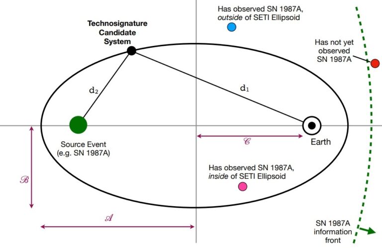 "We merged two searching frameworks - the ellipsoid method, which synchronizes signals to a conspicuous astronomical event, and the Seto method, which is tied to geometric angles and not distance - and applied them to four events. We chose four historically documented supernovae from the years 1054, 1572, 1604, and 1987, respectively. In this case, a supernova would act like a lighthouse, a common focal point for the sender of the signal and the receiver of the signal - us."
