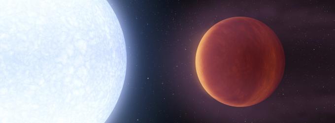 Artist's image of a similar exoplanet (KELT-9b) orbiting its host star. The planet orbiting Vega would be in a similar configuration.