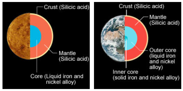 Contrasting interiors of Venus versus Earth. Credit:JAXA.
