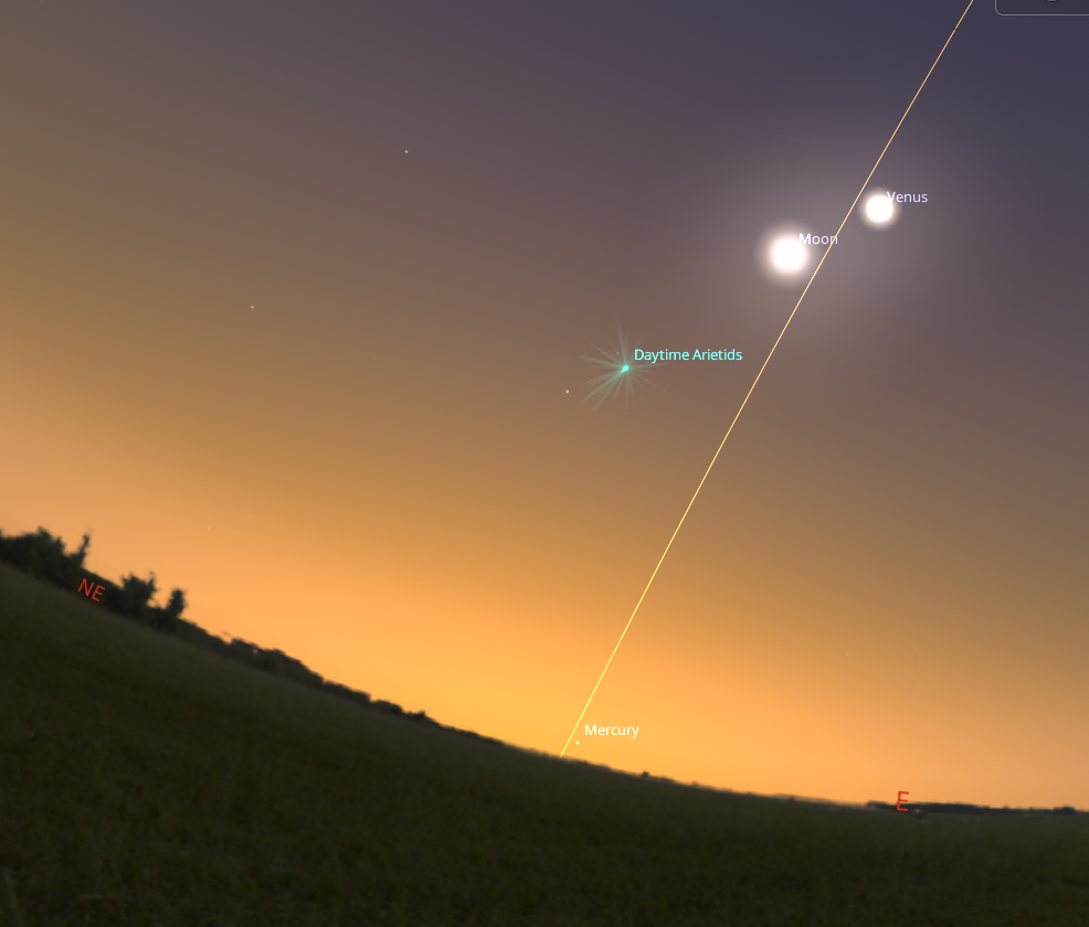 Looking east on the morning of Saturday, May 24th. Credit: Stellarium.