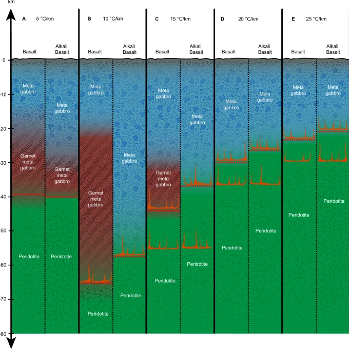 *Crustal density and thickness for Venus, versus various basalt compositions and thermal gradients used in the study. Nature/Creative Commons*
