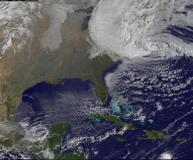 Satellite View of Hurricane Sandy on Oct. 29 at 9:10 EDT by NOAA's GOES-13 satellite.