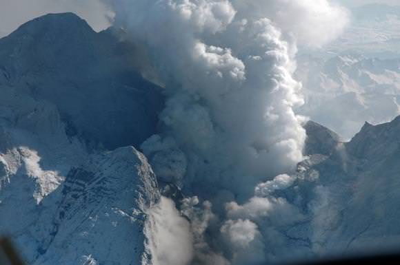 [/caption] Feel the ground. It's nice and cool, right? Well, dig down a few kilometers and things really heat up. Once you're down more than 30 km, and temperatures can reach more than 1,000 degrees C; that's hot enough to melt rock. The melted rock is called magma, and it collects into vast chambers beneath the Earth's surface. The molten rock is less dense than the surrounding rock and so it "floats" upwards through cracks and faults. When the magma finds its way to the surface, it erupts as lava, rock, ash and volcanic gases; this is a volcanic mountain.