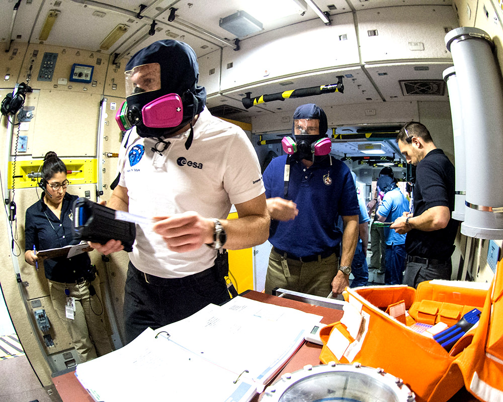 This is presumably what is happening in the recent picture above, where Alexander Gerst (from the European Space Agency, on the left) and NASA's Reid Wiseman are doing a fire drill on the ground.