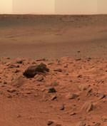 Image credit: NASA/JPL NASA's Spirit rover has taken a beautiful panoramic image of the Bonneville crater. Here's a 1024x768 wallpaper of the crater. The original image was quite wide, covering 180-degrees, so it doesn't quite fit a computer screen normally - this image has been cropped a bit. Spirit recorded this photo on March 12, 2004, using its panoramic camera. By taking such a detailed image, scientists can get a good idea about the surface material at the crater.