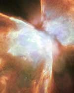 Image credit: Hubble The Bug Nebula, NGC 6302, is one of the brightest and most extreme planetary nebulae known. At its centre lies a superhot dying star smothered in a blanket of ?hailstones?. A new Hubble image reveals fresh detail in the wings of this ?cosmic butterfly?.