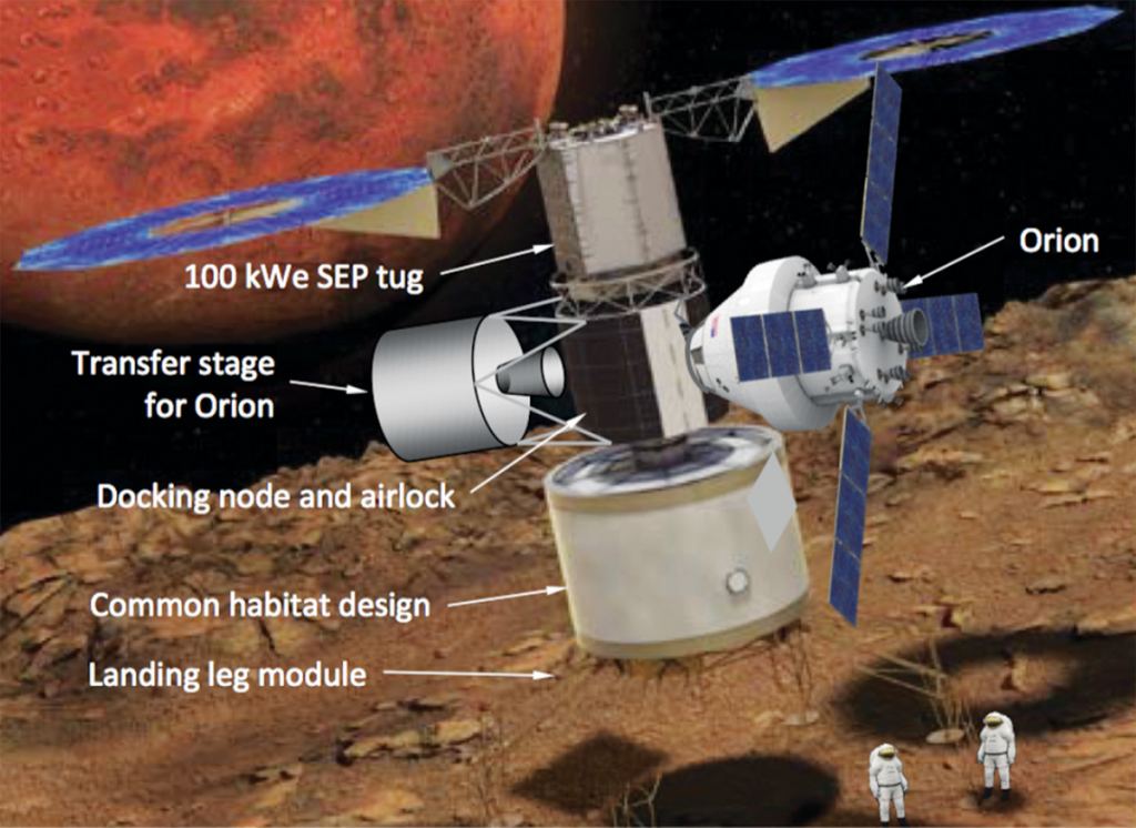 Based on the lessons learned from the Phobos mission, the actual landing on Mars would take another six SLS launches. There'd be more supplies and a 75-tonne Mars landing vehicle which would wait in a high Mars orbit.