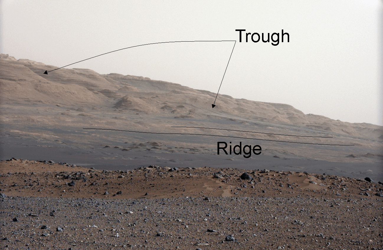 So Curiosity has been on Mars for an Earth year and is now, slowly, making its way over to that ginormous mountain -- Mount Sharp, or Aeolis Mons -- in the distance. The trek is